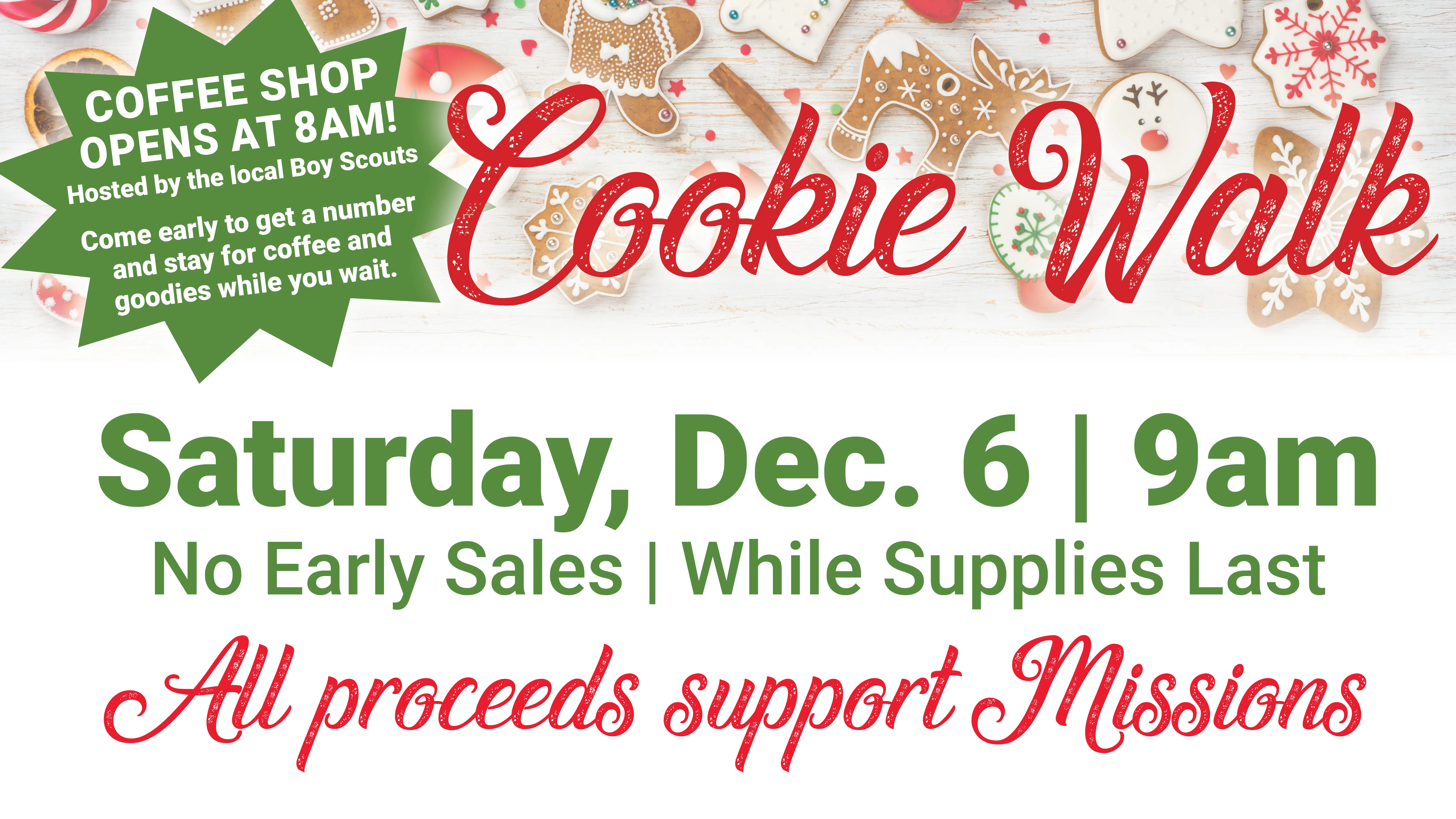 Doors open at 8am | Grab your ticket & enjoy the Coffee Shop while you wait $10 per pound of cookies and candy All proceeds support UWF’s District-wide, national, and local missions. Handmade quilted items will also