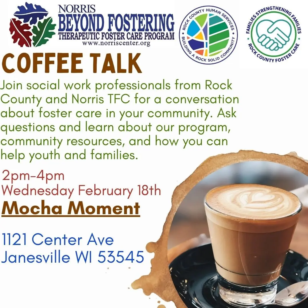 Want to know more about Foster Care and becoming a Foster Parent? Come have a cup of coffee with us at Mocha Moment from 2-4 p.m. on February 18, 2026, to learn more. Professionals from Rock County