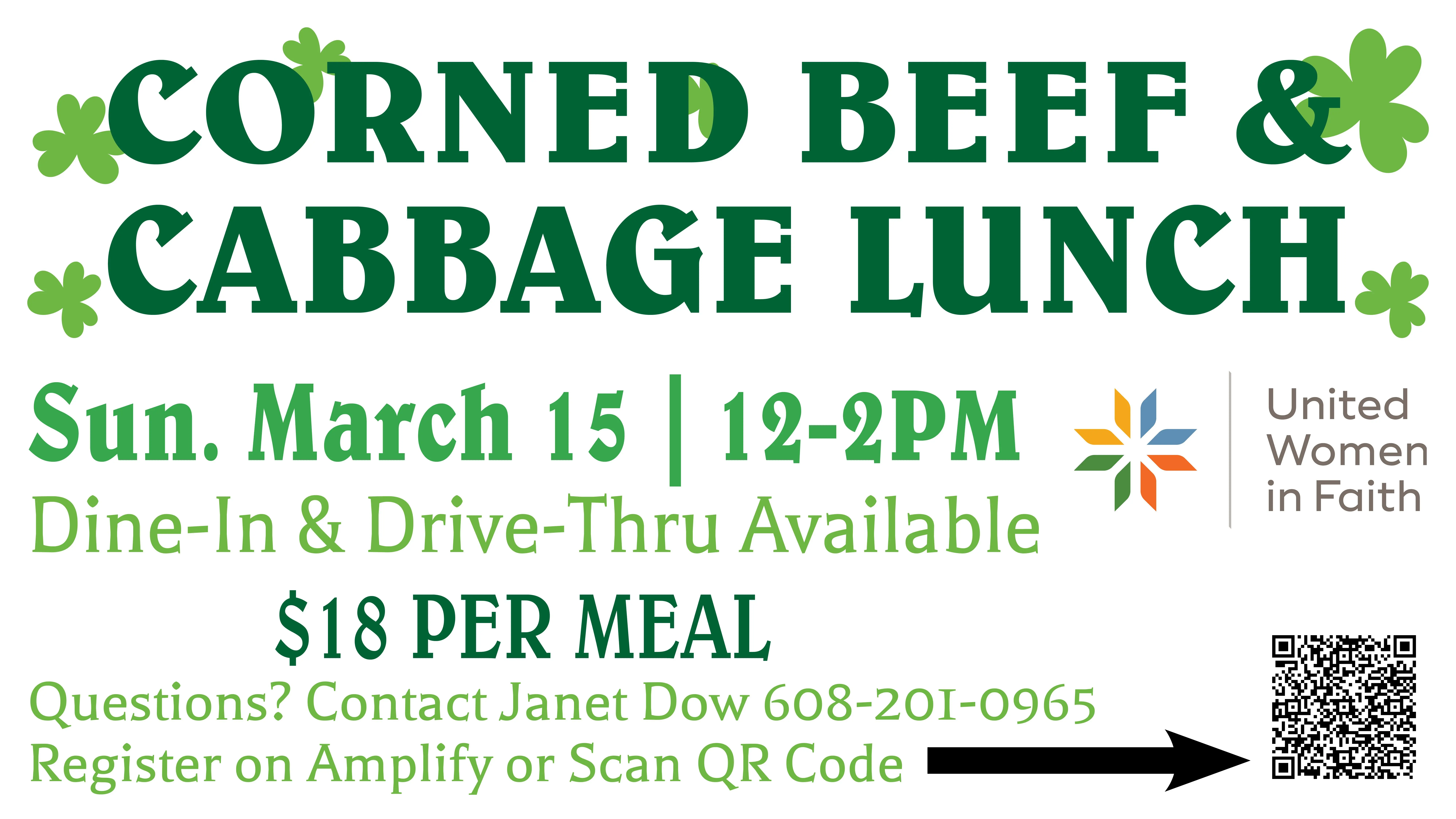 Cargill United Methodist Women Annual Corned beef and Cabbage Dinner, Sunday March 15th 12 pm to 2 pm, dine in or carry out available.