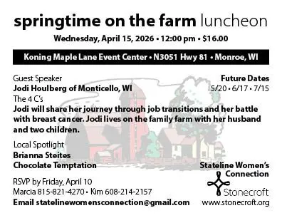 Springtime on the Farm Guest Speaker: Jodi Houlberg of Monticello, WI Local Spotlight: Brianna Steites - Chocolate Temptation