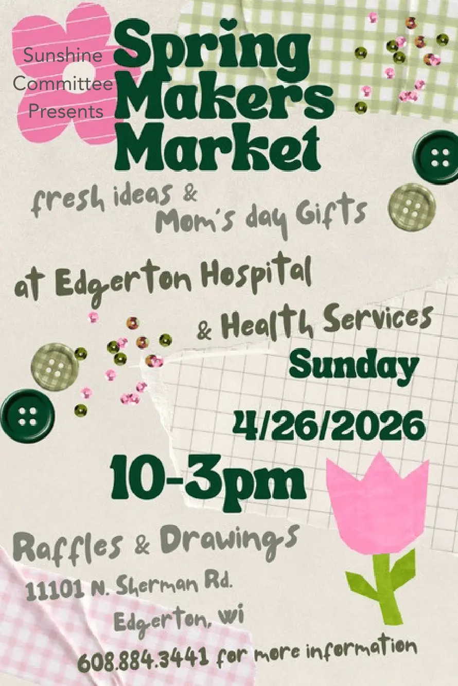 Join us for our Spring Makers Market at Edgerton Hospital! Celebrate the season with a showcase of creativity featuring handcrafted goods from talented local makers. This special event will highlight a variety of unique, handmade items perfect
