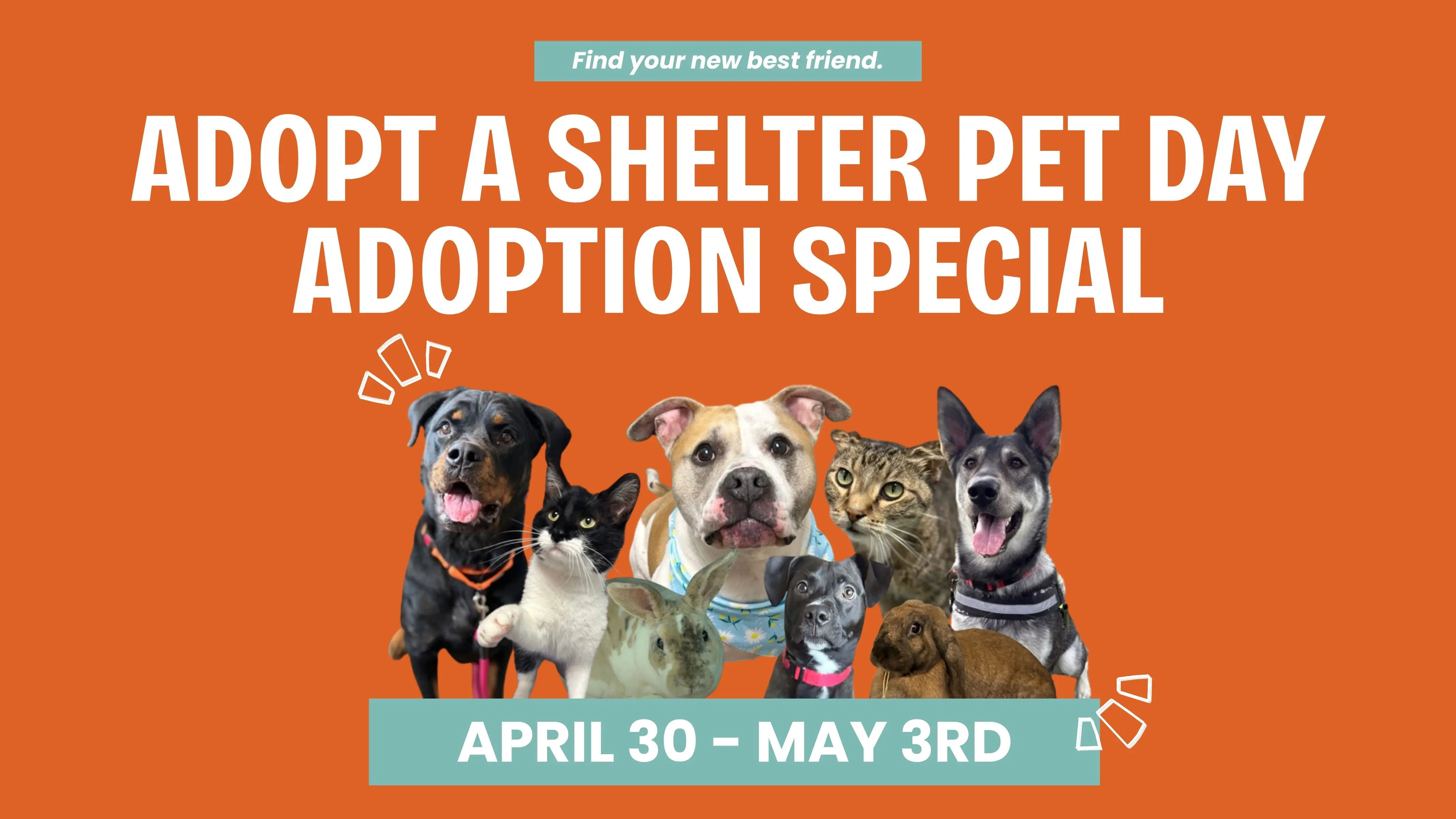 Thursday, April 30th is National Adopt A Shelter Pet Day & what better way to celebrate than doing just that?! That's why we're hosting a FOUR-DAY adoption event with lowered adoption fees for our cats, dogs, &